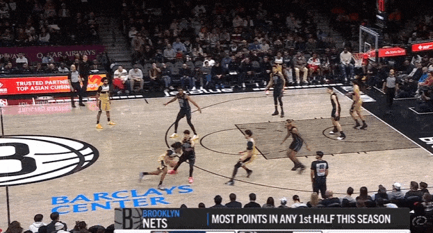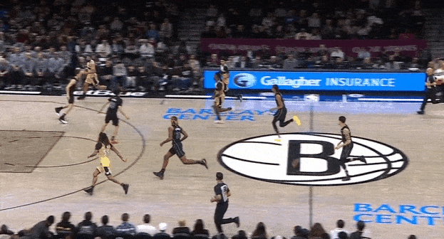持球过半场后立即和吉尔在弧顶发动挡拆,推球变向走掩护墙一侧摆脱追防人,突破行进间撩起手臂+演技逼退身后掏球的萨拉夫和弱侧刷卡的曼恩,随后长驱直入如入无人之境直接起双手扣篮终结。