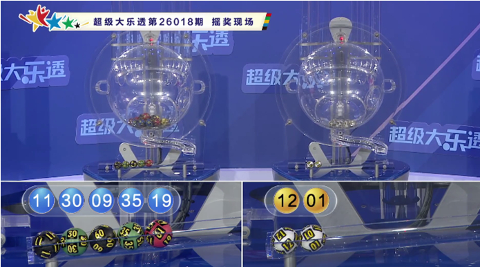 上期开奖:大乐透第2026018期开奖号码为:09、11、19、30、35+01、12。