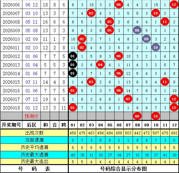 其中,号码奇偶比为57:43,大小比为41:59,012路比为33:39:28,本期前区龙头号码参考01。
